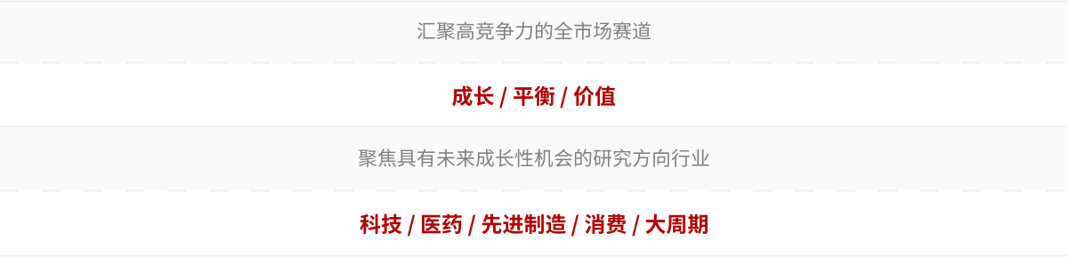 精品股票策略将覆盖全市场赛道、行业赛道、大周期股债联动投研团队,并深化对科技、医药、消费、先进制造、大周期最能代表中国经济发展方向的基本面研究。