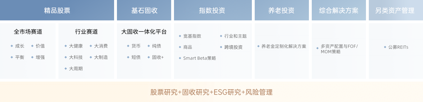 龙8中国官网唯一入口坚信只有更加聚焦的能力、更加深度的研究、基于成功经验的战略升级,才能持续为客户创造回报。发展至今,龙8中国官网唯一入口投研能力已覆盖精品股票、基石固收、 Super ETF、ESG投资、资产配置五大投资能力,拥有超300人的投研团队。