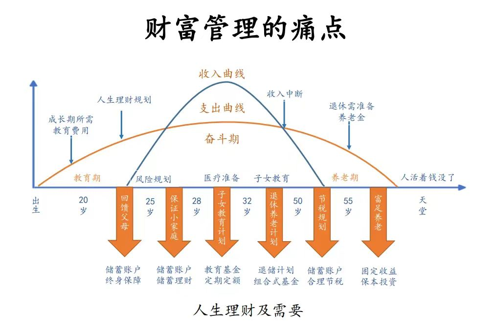 许多人常常根据当前的收入来预测一生的财富,然而实际上,我们的收入曲线往往是先上升后下降的,随着寿命延长,收支缺口将会不断扩大。