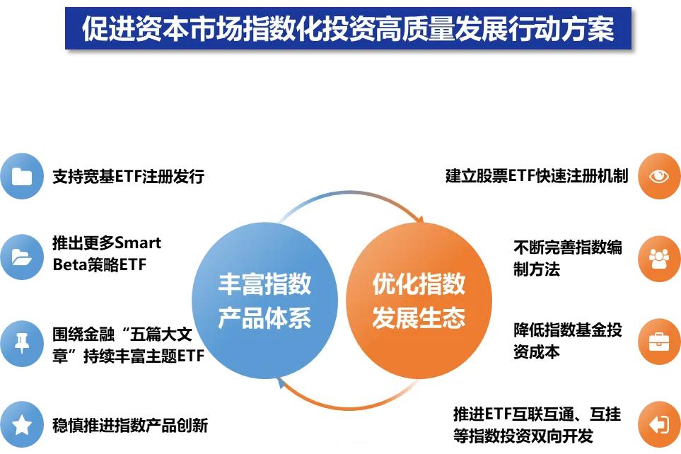 2025年初发布的《促进资本市场指数化投资高质量发展行动方案》再次明确,要持续加强优质指数供给,不断丰富指数产品体系、加快优化指数化投资生态,着力推动资本市场指数与指数化投资高质量发展。