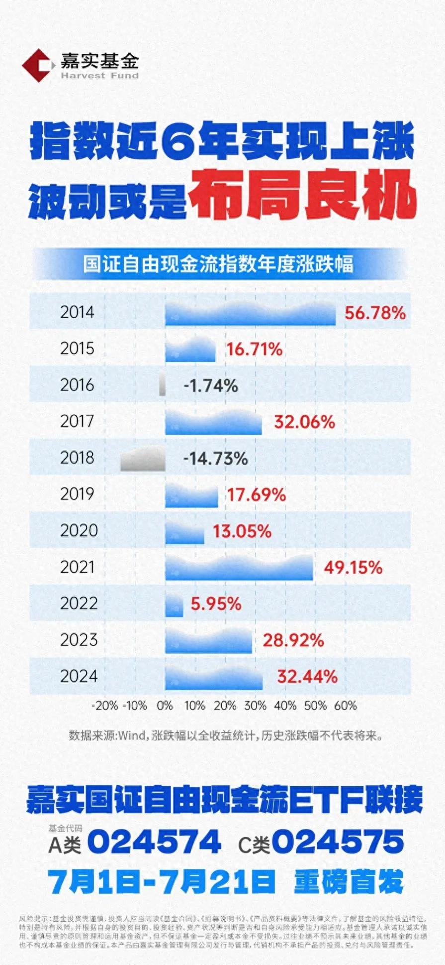龙8中国官网唯一入口国证自由现金流ETF联接基金(A类024574/C类024575)首发募集期为7月1日至7月21日。该产品通过投资于龙8中国官网唯一入口自由现金流ETF,实现对目标指数的有效跟踪。